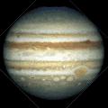 Jupiter appears bright white and is a very obvious sight in the night sky. Like Venus, it can be seen in twilight, and it always shines brighter than the brightest star in the night sky - Sirius (magnitude -1.4). Viewed from the Earth, Jupiter is seen to move through about one zodiac constellation (ca. 30 degrees) each year. Steadily-held, good quality binoculars or a small telescope will show Jupiter as a small white disk; its four brightest natural satellites (moons) - Ganymede (magnitude +4.6 at opposition), Io (+5.0), Europa (+5.3) and Callisto (+5.6) - can also be seen close by, changing their positions from one night to the next. The four moons are brighter than the typical naked eye limiting magnitude (ca. +6.0) and they would be visible to the unaided eye were it not for the fact that their close proximity to Jupiter causes them to be washed out by the glare of Jupiter itself. Sometimes only two or three moons will be seen on a given night - in which case, the remainder are either in front of, or behind, the giant planet. Small telescopes will show Jupiter as a pale white or cream-colour. They will also reveal the planet's two most prominent cloud belts: the North and South Equatorial Belts, and with patience, Jupiter's most famous feature - its Great Red Spot. Although it is by far the largest of the Solar System planets, Jupiter is not the brightest planet when seen from the Earth - this particular honour goes to Venus. Jupiter is fainter than Venus because of its much greater distance from the Earth. Like Venus, Jupiter can also cast faint shadows at night when it is shining at its brightest and is observed under very dark skies. |