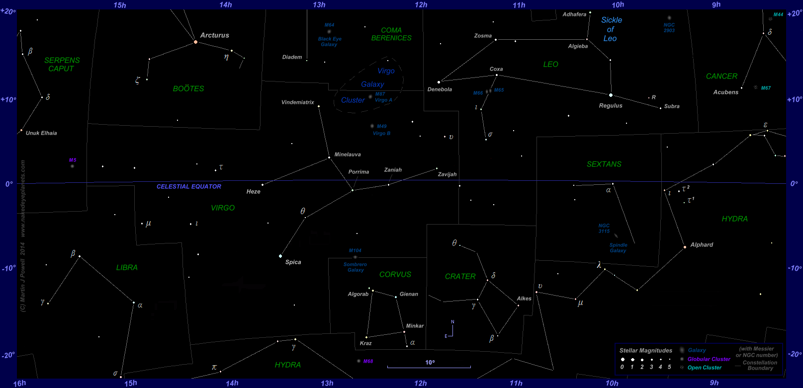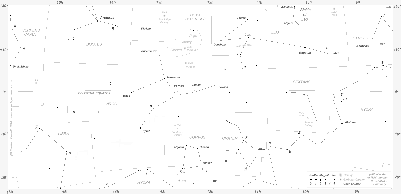 Details of other interesting objects in the region (star clusters, variable stars, nebulae, galaxies, etc) can be found on the Zodiacal Sky: Cancer-Leo-Virgo page.