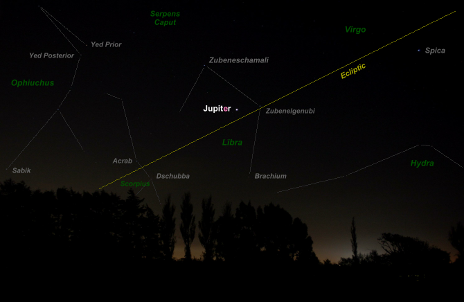 Jupiter at opposition in Libra in May 2018 (Copyright Martin J Powell 2018)