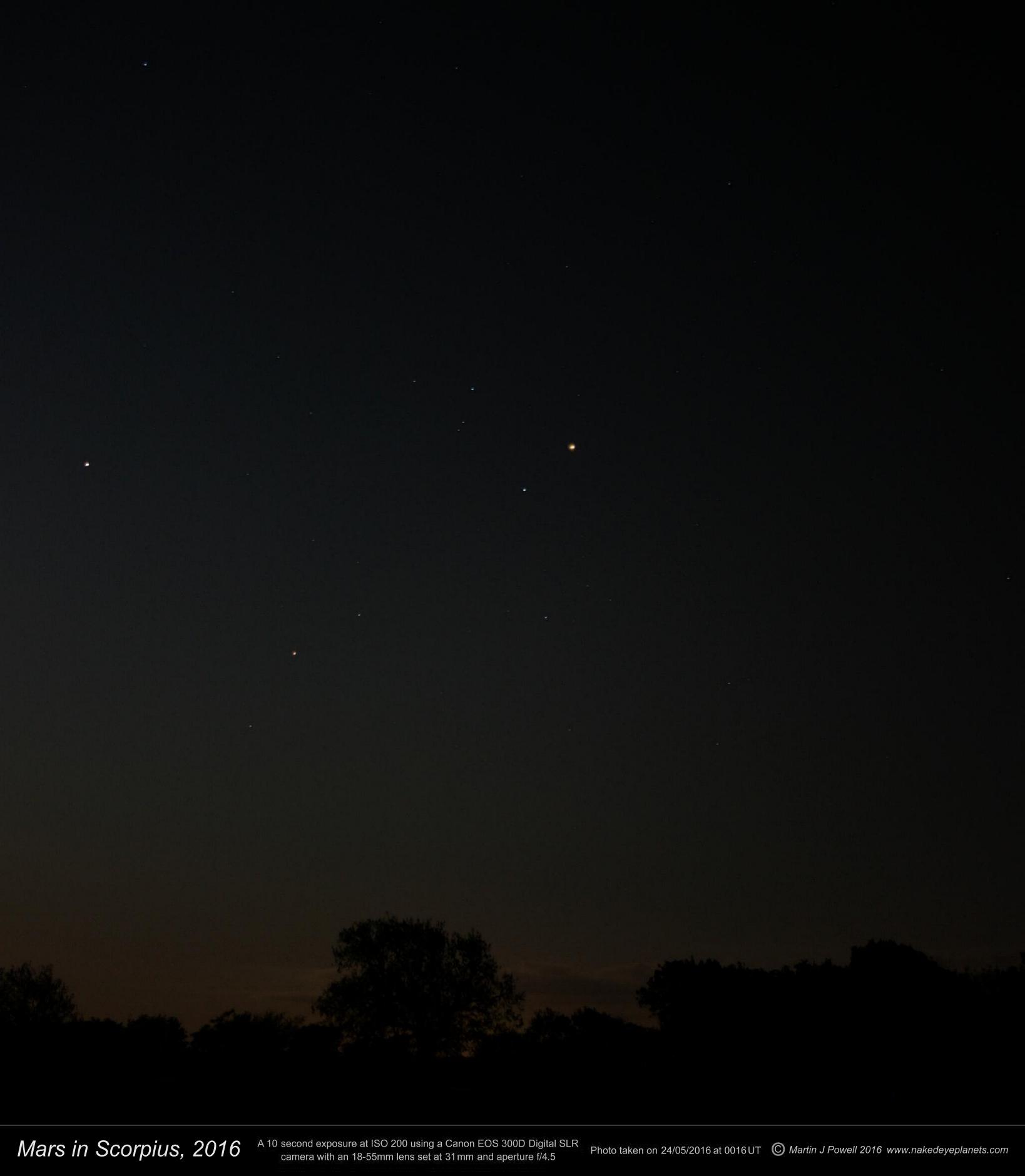 positioned a few degrees to the South-west of Mars.