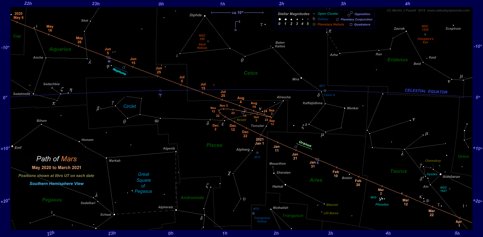 visible from Equatorial and Northern Tropical latitudes. Mars