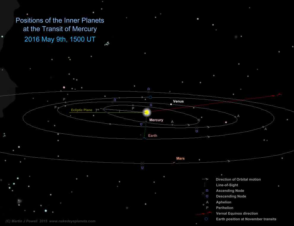 of the Inner Planets in their orbits at the moment of mid-transit on May