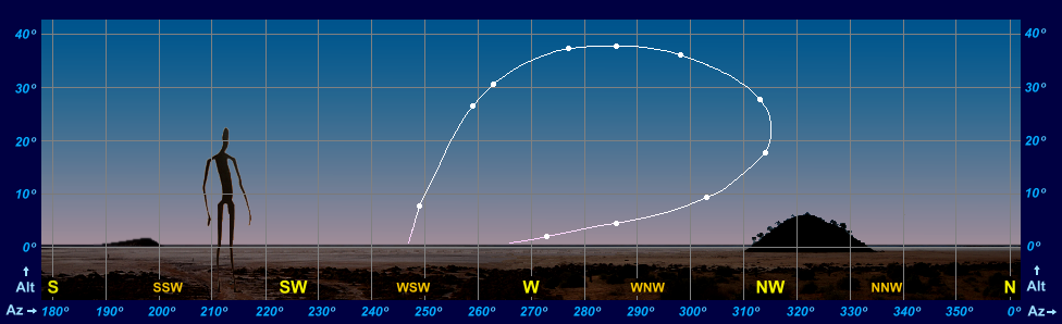 | The Path of Venus in the Evening Sky (plotted for 30 mins after sunset) during 2018 for an observer at latitude 55° North. |