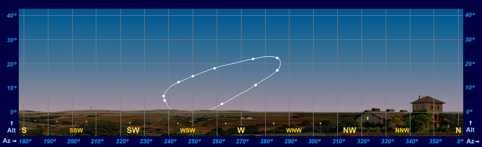 Direction & Altitude Diagrams (Horizon Diagrams) for the 2018 Evening Apparition